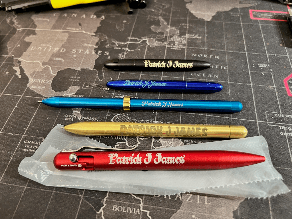 I can do this work for anyone. The pens are simple refillable bamboo pens. The Redwood pens are a nice triple set, Roller Ball, Fountain Pen and Ballpoint.